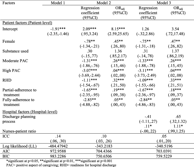 From: Hospital and patient factors influencing the health status among patients with schizophrenia, thirty days after hospital discharge: multi-level analysis